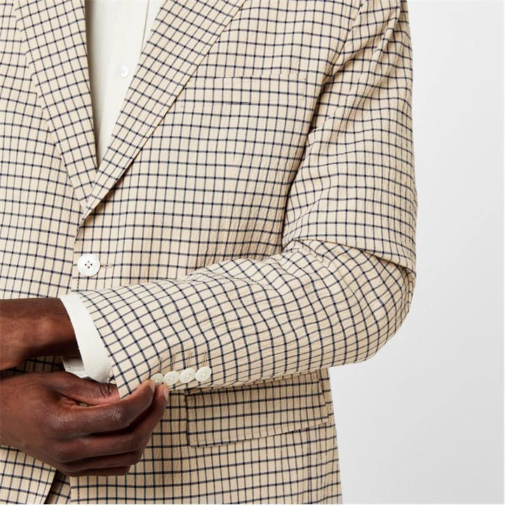 Forward-thinking style meets classic British styling with Patrick Grant Studio’s exclusive collection for House of Fraser. The Berkley Suit Jacket has been expertly crafted from a lightweight lyocell seersucker composition and comes in a single-breasted style. Featuring a traditional notch lapel to the collar, two button fastenings, flap pockets at the front, a welt pocket to the chest, a double vent to the back, and two internal pockets, a softer shoulder deconstructs the look. Half-lined, an all-over grid check pattern defines this piece, while the signature Patrick Grant Studio branding completes the look.