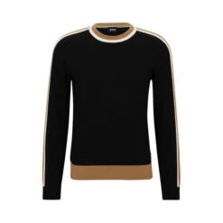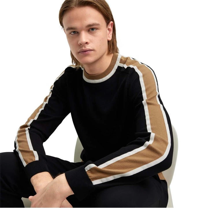 summery cotton – basic plus crew neck style – colour block pattern down sleeves and trims – iconic stripe inside back neck
