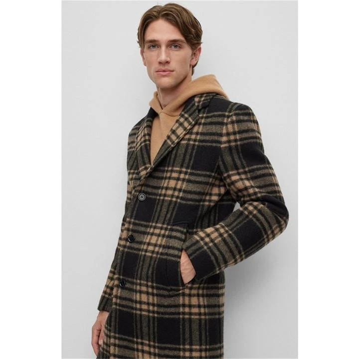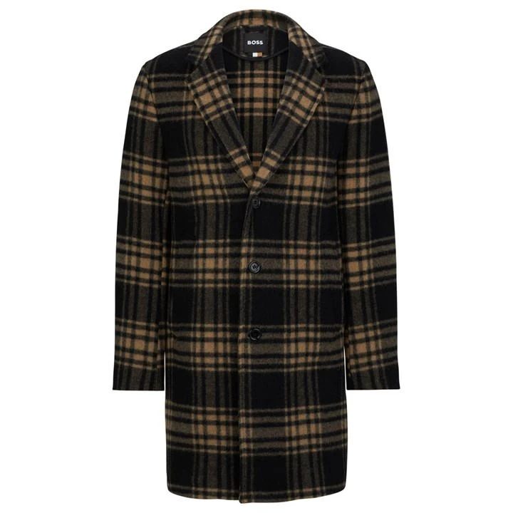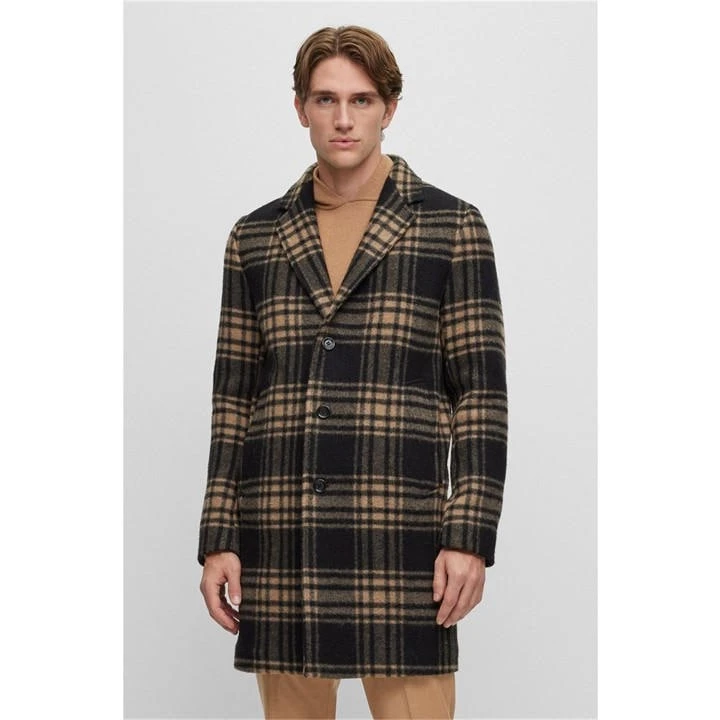 Cut in a thigh-length silhouette for an effortlessly flattering fit, the notched lapel collar is secured with a central button fastening that adds a touch of refinement to this overcoat. Adorned with long sleeves for seasonal styling, the slip pockets at the hips allow you to carry your essentials with the utmost ease. Complete with subtle Boss Black branding on the interior, step out in style at any dinner setting or business meeting.