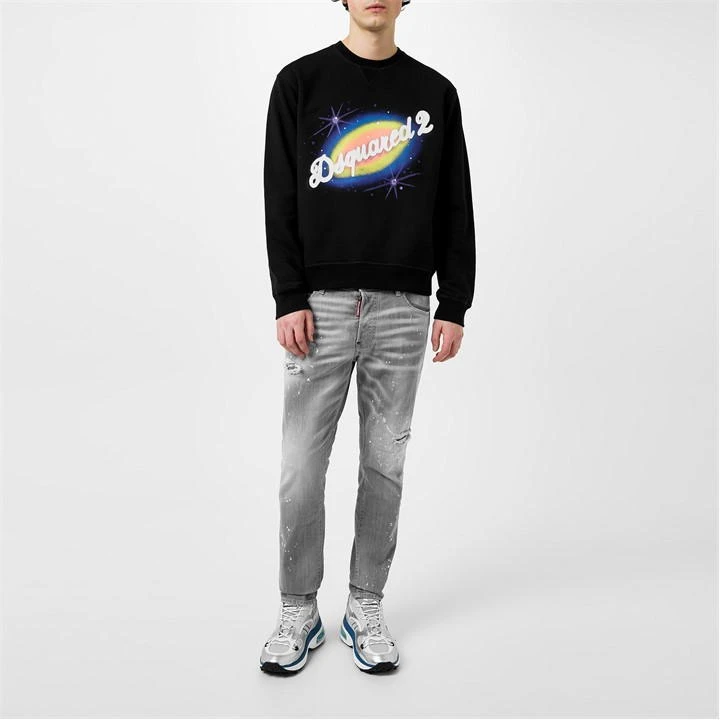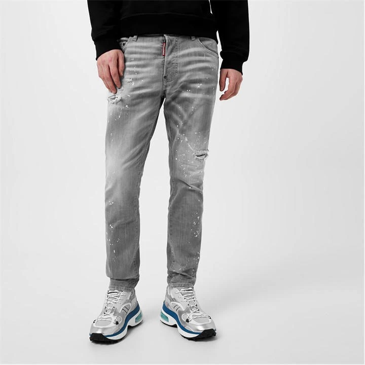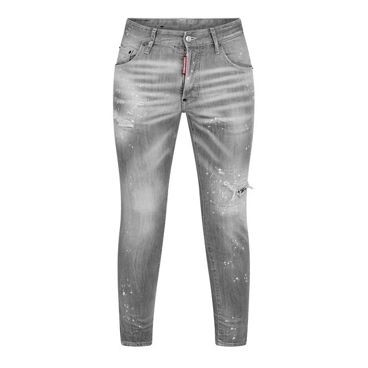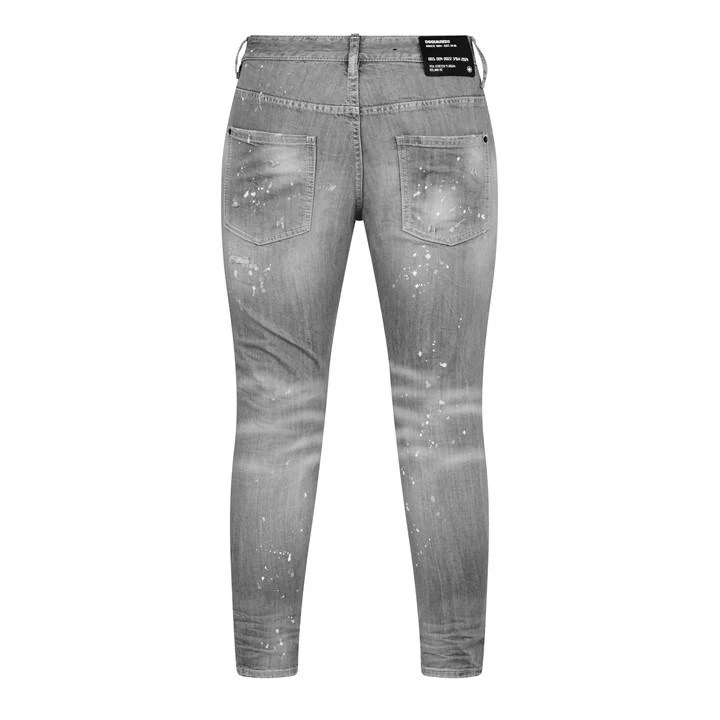 Crafted from light grey stretch-cotton washed denim, these jeans exude a trendy twist. The whiskering effect and ripped detailing add a touch of urban edginess, while the distressed effect creates a unique, lived-in look for a fashion-forward statement. Featuring a logo patch to the rear and classic belt loops, these jeans boast an air of exclusivity and luxury synonymous with the Dsquared2 brand.