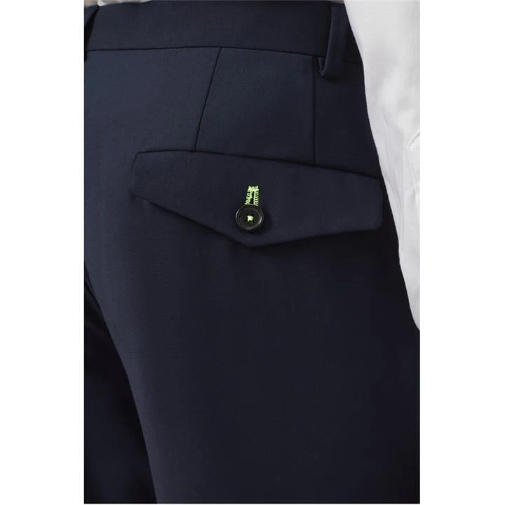 The Ellroy suit by Twisted Tailor is a modern take on the classic navy suit – this new ‘Dark Navy’ fabric is a deeper tone, giving a smarter look to a timeless suit. Cut to a contemporary slim fit it’s an understated men’s navy suit that makes a big impact. These flat front trousers feature slanted front pockets, belt loops and rear back pockets with the distinctive lime green thread stitching on the button holes. Wear for any occasion; from the boardroom to the bar, to the aisle. Pair with the matching slim fit navy suit trousers for a super sharp 2 piece suit.