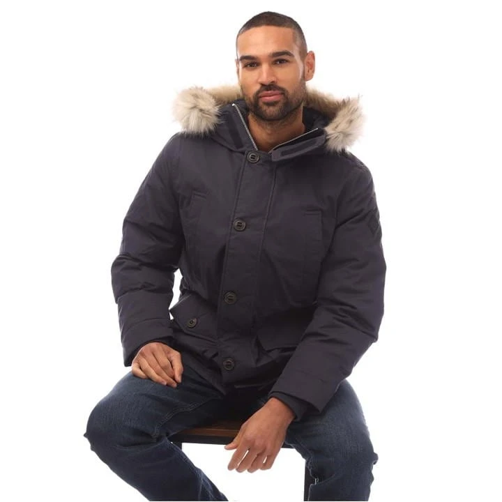 Filled with 90% certified down and 10% feathers the Winter Parka is a heavy duty water-repellent winter jacket made for the coldest of days. With a mid-length silhouette this coat features a detachable faux fur trim at the hood four outer pockets and two zip inner pockets an embroidered locker loop at the back and a silicone logo badge at the shoulder.