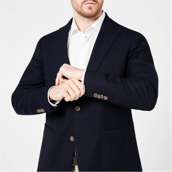 With its single-breasted design and double-button fastening, a sleek style is created, while the front slip pockets and interior zip pocket provide ample space for your everyday essentials. The buttoned cuffs and notched lapels pay homage to traditional tailoring styles, ensuring this men’s blazer instantly elevates any ensemble it is paired with. Whether it’s a business meeting or a summer wedding, the Hexden Tailored Fit Blazer is designed to seamlessly transcend seasons and events.