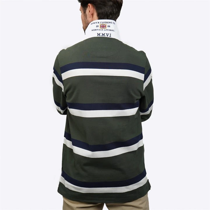 Elevate your casual wardrobe with the Howick Long Sleeve Rugby Shirt, a timeless and sporty piece that combines classic stripes with thoughtful branding details. This rugby shirt is designed for those who appreciate a casual yet polished look. It features a classic striped design that adds a touch of athleticism and style to your outfit. The branded chest patches and branding under the back collar reflect the shirt’s attention to detail and quality. Branded buttons add a touch of authenticity and style. Whether you’re dressing for a relaxed outing or need a casual yet put-together look, this rugby shirt has you covered.