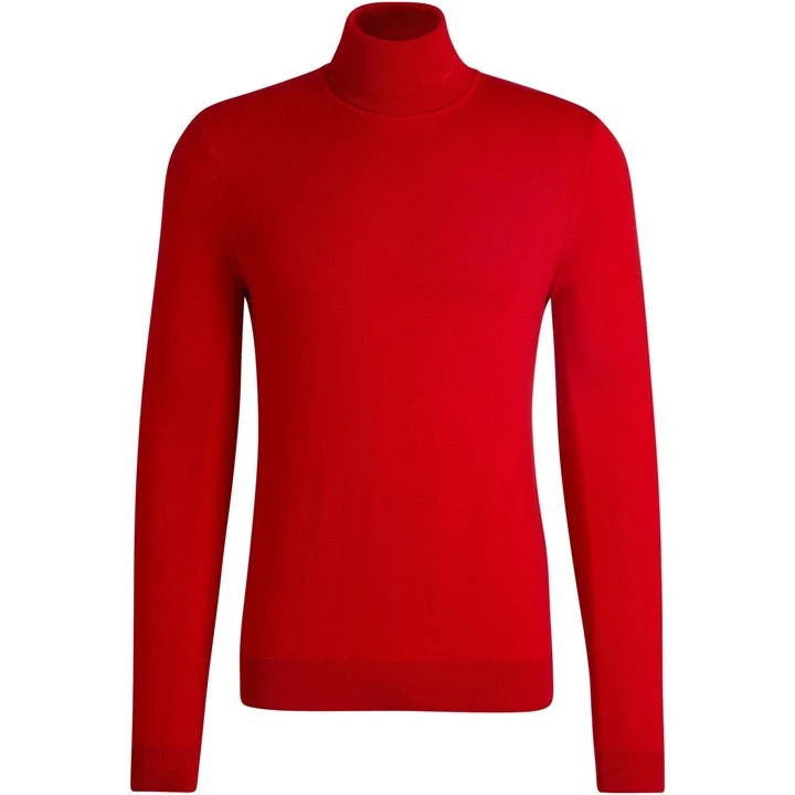 long sleeve knit – HUGO logo embroidery – turtle neck – french shoulder – extrafine merino basics – RESPONSIBLE – responsible wool