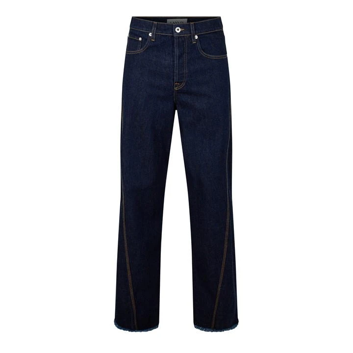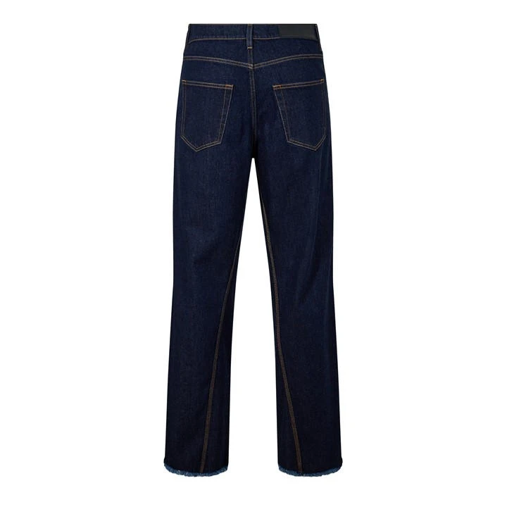 Twisted baggy denim pants with angled seam detail, raw hem at the bottom of the leg and relaxed fit. Made in Italy