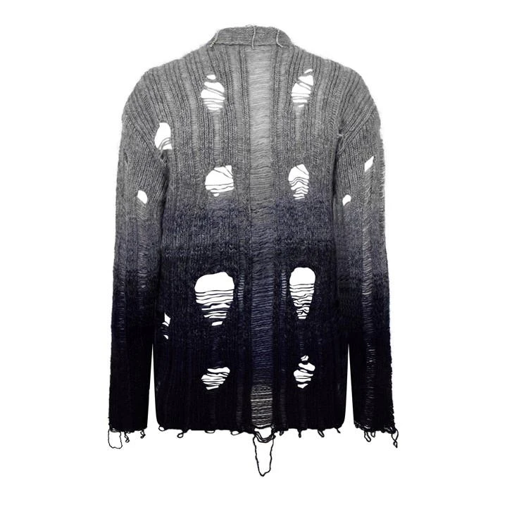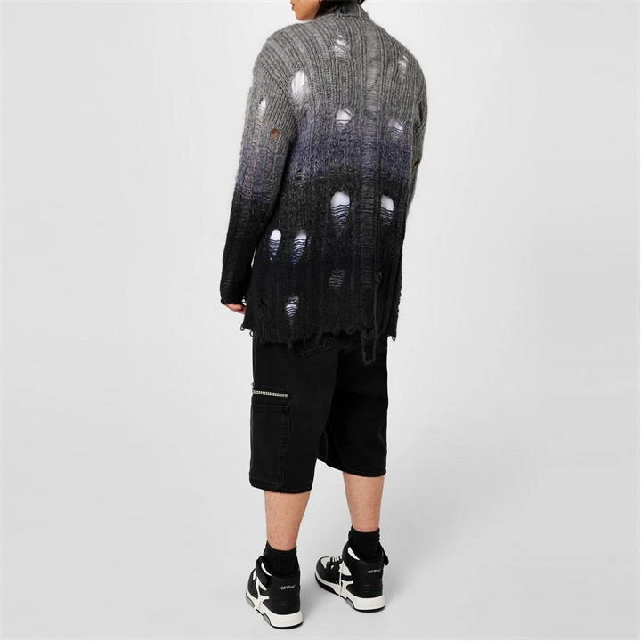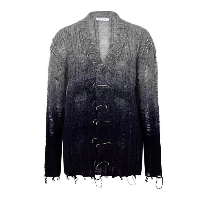 This Punk Degradé Cardigan effortlessly epitomise the house’s melting pot of influences, masterfully constructed in a high-quality mohair blend. Full-length sleeves and glistening ball-bearing appliques frame the classic V-neckline, while three concealed snap fastenings on the front provide a secure fit. All-over distressed and frayed detailing subtly subverts traditional expectations of luxury, and discreet tone-on-tone stitching completes the construction and brings the elements together into a cohesive whole.