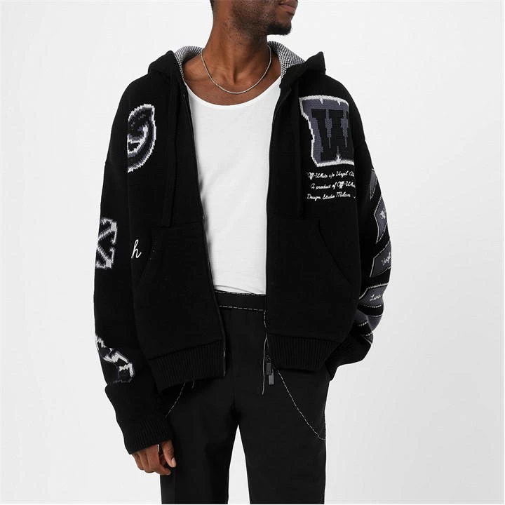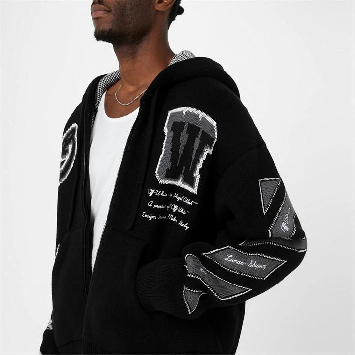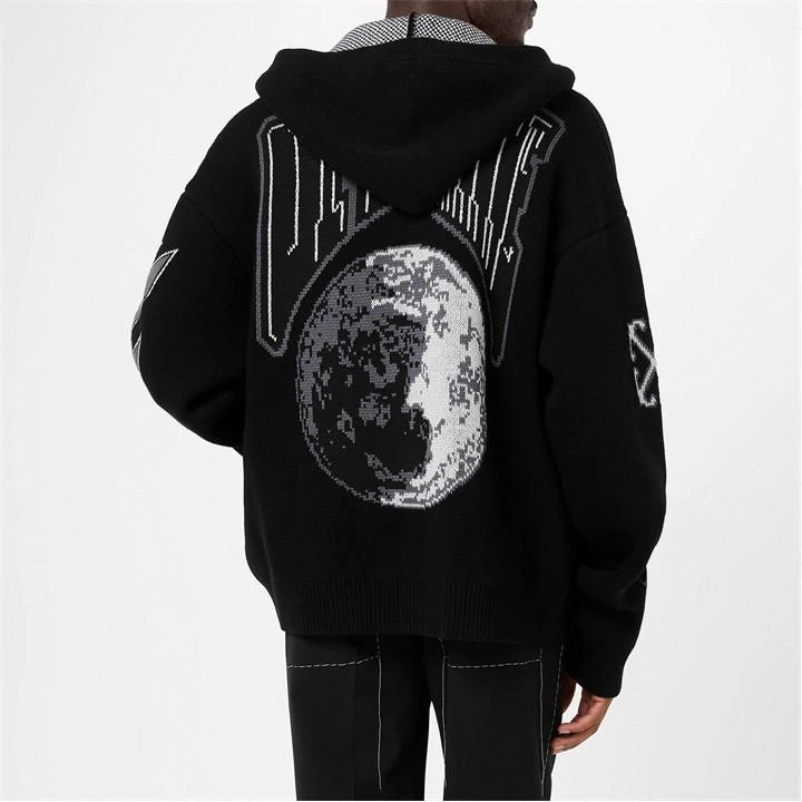 – Varsity-inspired Off-White lettering across the back above a large graphic of Earth’s moon.