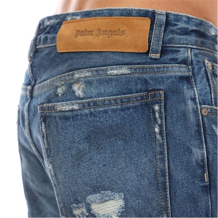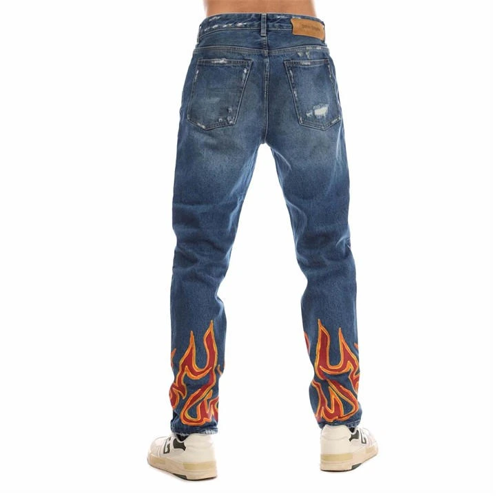 Mens Palm Angels Burning Regular Jeans in blue – red.