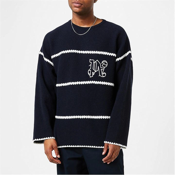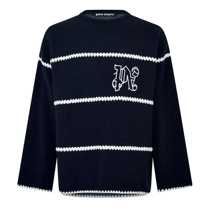 The contrasting hemline adds a touch of uniqueness to the design, creating visual interest and a modern twist. The horizontal embroidered all-over stripe pattern elevates the aesthetic, while the embroidered monogram logo on the chest adds exclusivity. Designed for daytime occasions, this Monogram Striped Sweatshirt effortlessly transitions from casual get-togethers to stylish outings. It’s perfect for those looking to make a statement while maintaining an air of sophistication.