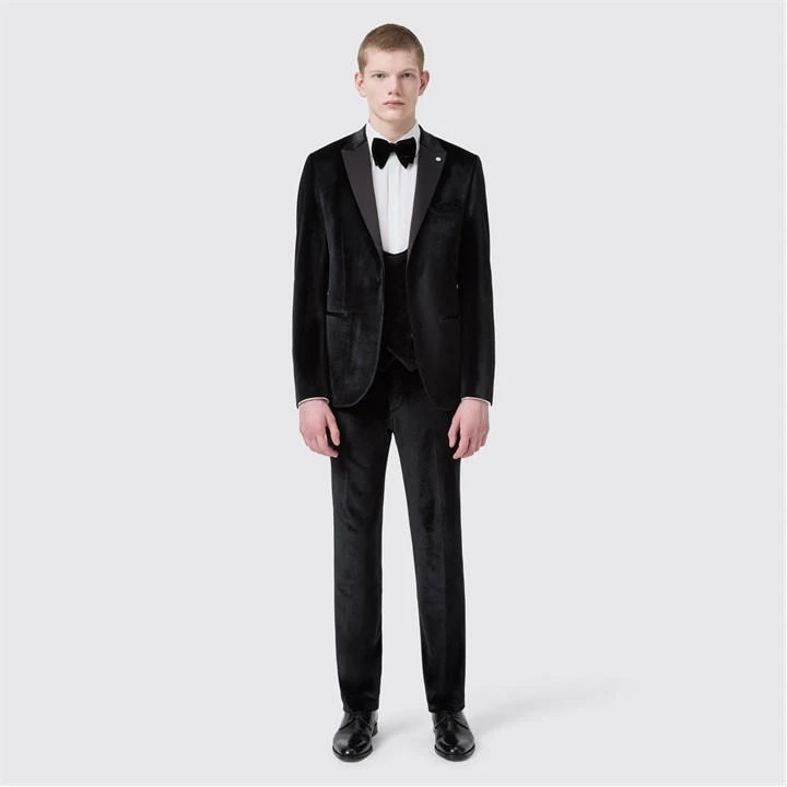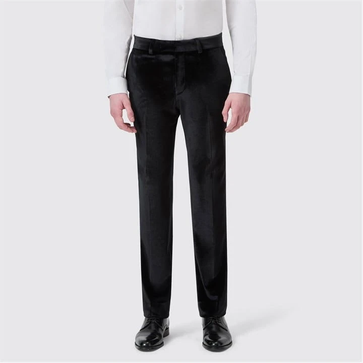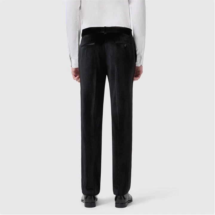 The timeless dress style of the Sylvester black tuxedo trousers with their satin contrast side panel will tick all the boxes for black tie dress code. Cut to our signature SLIM FIT, this black velvet tuxedo trousers are as sharp as they are sophisticated. Pair with the matching tuxedo jacket and double-breasted waistcoat for a top-to-toe look.