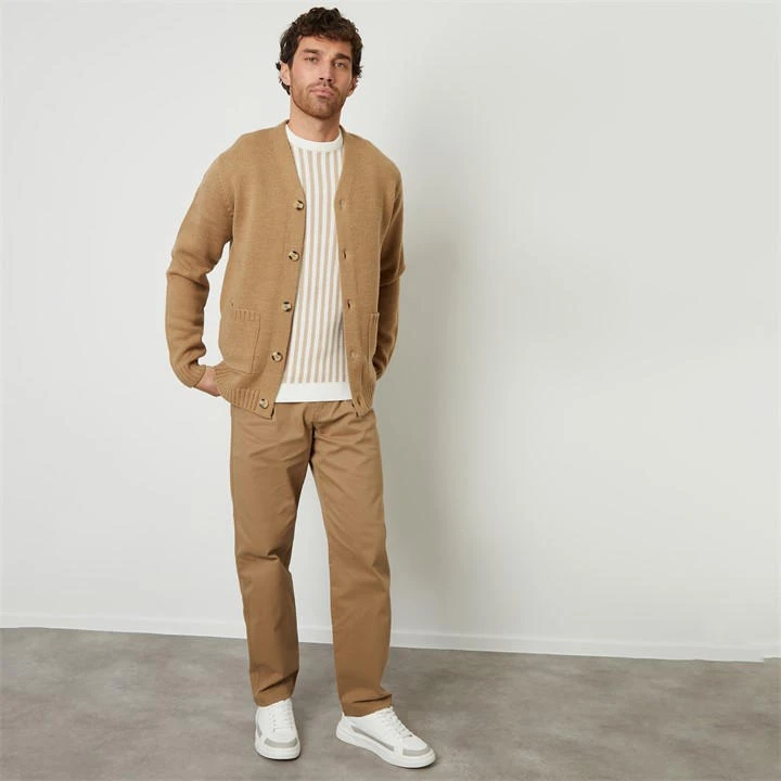 Be comfortable in style in this button down, knitted cardigan from Threadbare. With a V-neckline, ribbed cuffs and hem, this button up cardigan is the perfect addition to your wardrobe. Complete with branded metal tab above the hem, five mock horn buttons and two patch pockets. Made from a super-soft yarn with wool, this style is ideal for layering. Pair with dark denim jeans, a white t-shirt and boots for a stylish, casual look.